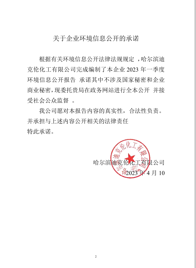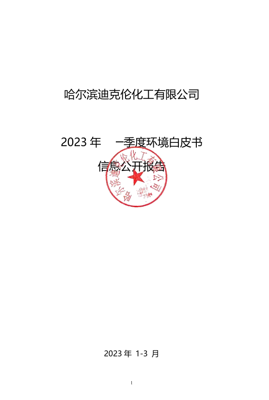 哈爾濱迪克倫化工有限公司2023年一季度環(huán)境白皮書信息公開報(bào)告