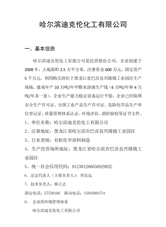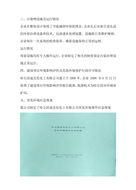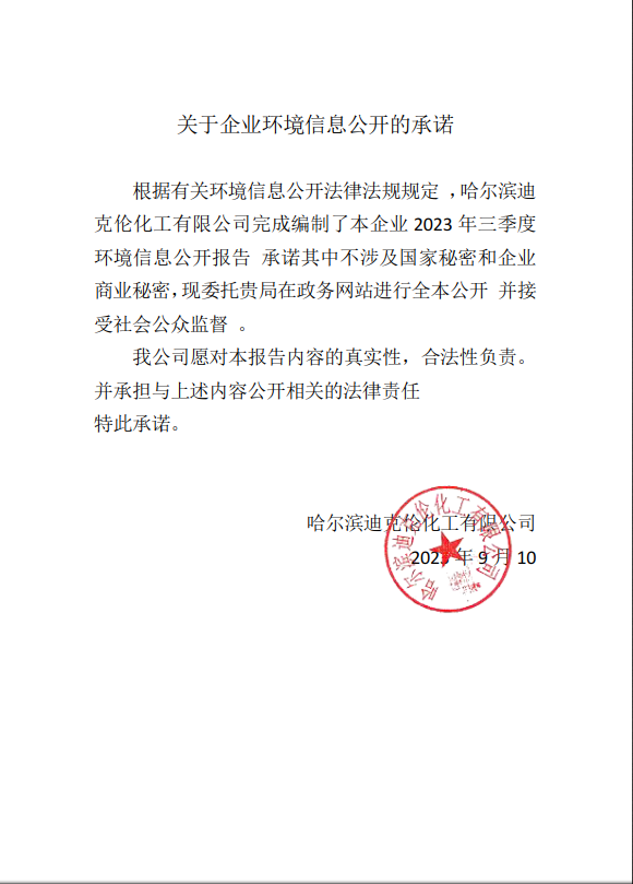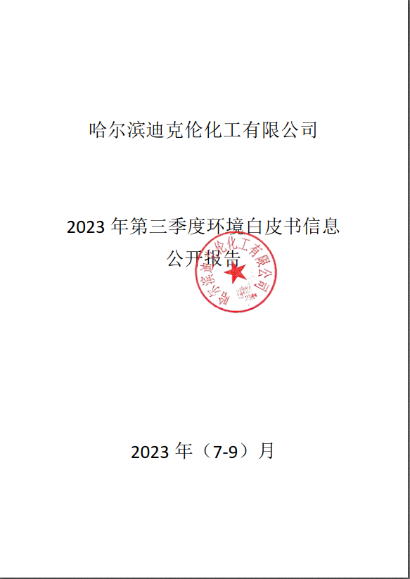 哈爾濱迪克倫化工有限公司2023年三季度環(huán)境白皮書信息公開報告