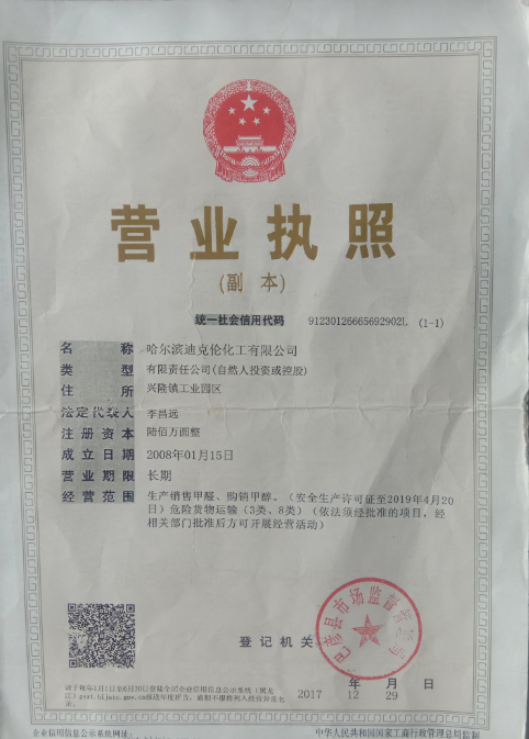 哈爾濱迪克倫化工有限公司主要產(chǎn)品是甲醛。產(chǎn)品的特點(diǎn)是有機(jī)化工原料,用途廣泛。目前消費(fèi)市場包含制造脲醛和酚樹脂。脲醛樹脂的用途是做人造板的粘合劑等,酚醛樹脂主要也是做膠合板的粘合劑,其次是做絕熱板、隔音板、玻璃纖維板等。甲醛還大量用于制造聚乙烯醇縮甲醛纖維(維倫纖維)、季戊四醇、烏洛托品、聚甲醛和精細(xì)化學(xué)品等,與哈爾濱茂化化工有限公司、哈工大強(qiáng)石混凝土有限公司合作。